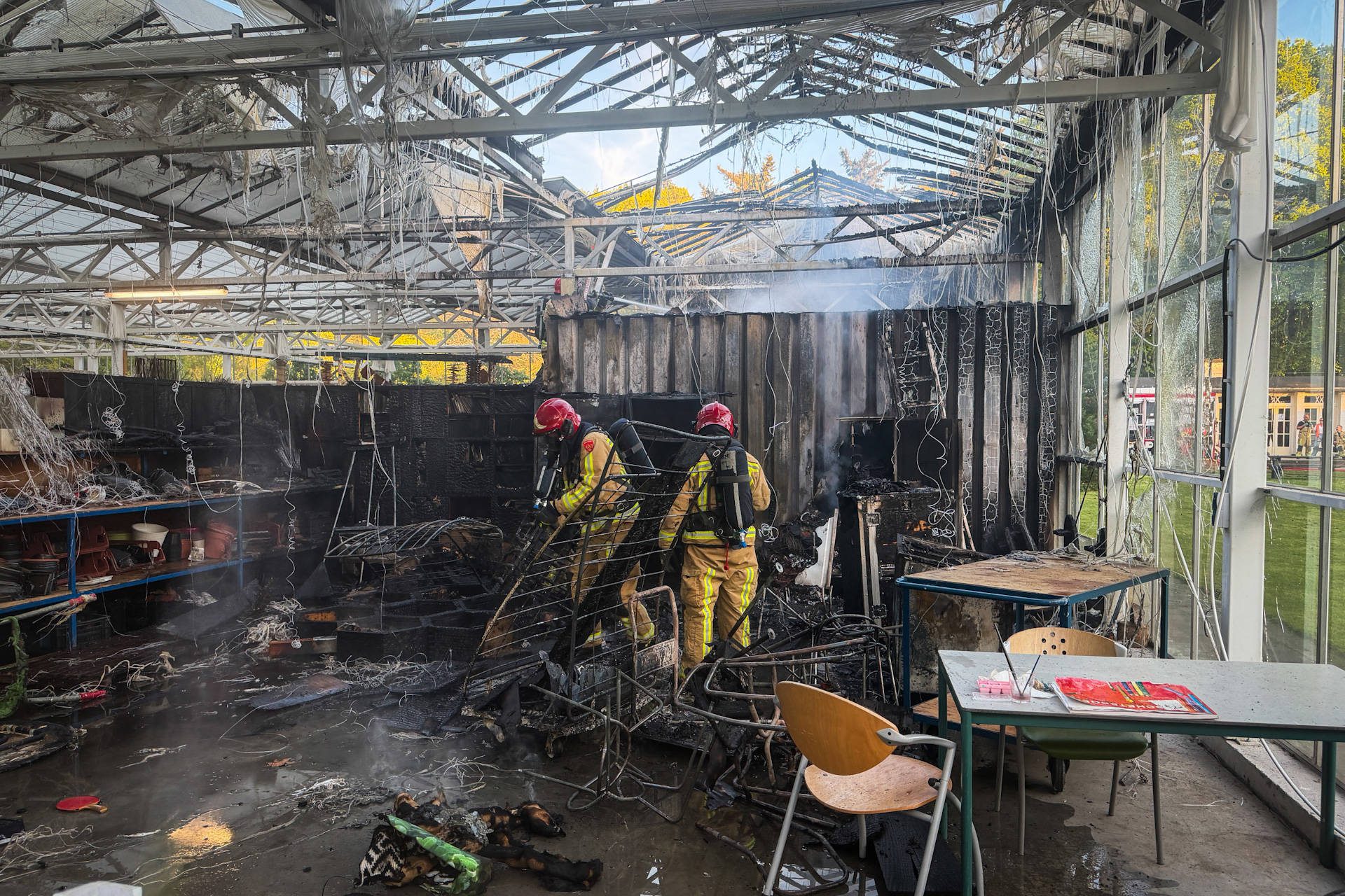 Brand bij dagbesteding, kas zwaar beschadigd