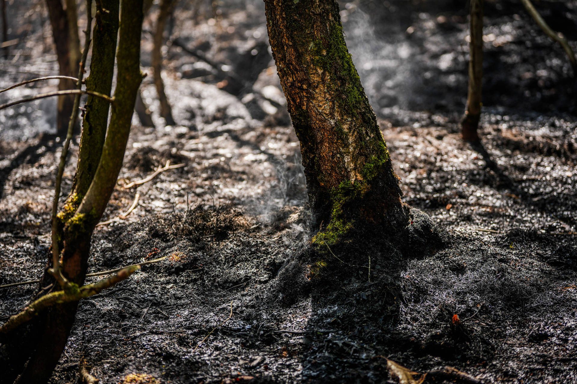 De brand woedt in een moeilijk toegankelijk dennenbos, wat het bestrijden bemoeilijkt. De dikke humuslaag op de bodem zorgt ervoor dat er goed nageblust moet worden. Hoewel de vlammen inmiddels gedoofd zijn, stijgt er op verschillende plekken nog rook uit de grond. Door de dichte bosschages is het moeilijk om de exacte omvang van het afgebrande gebied in te schatten.