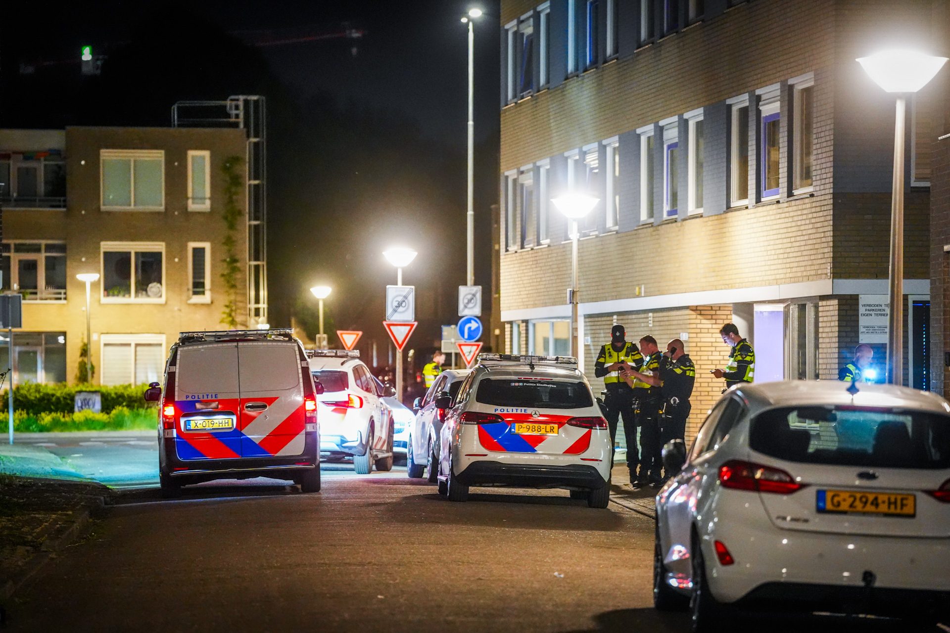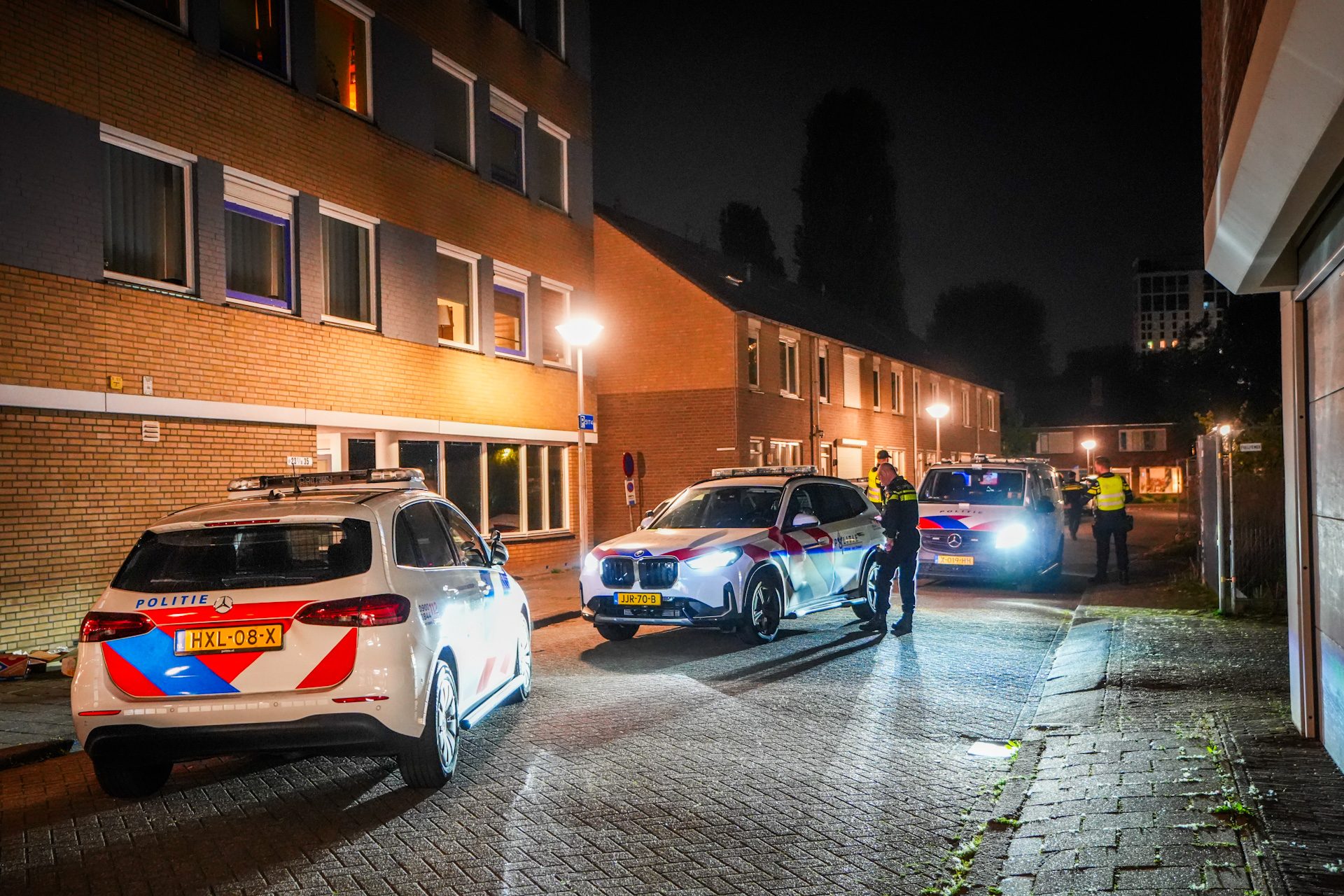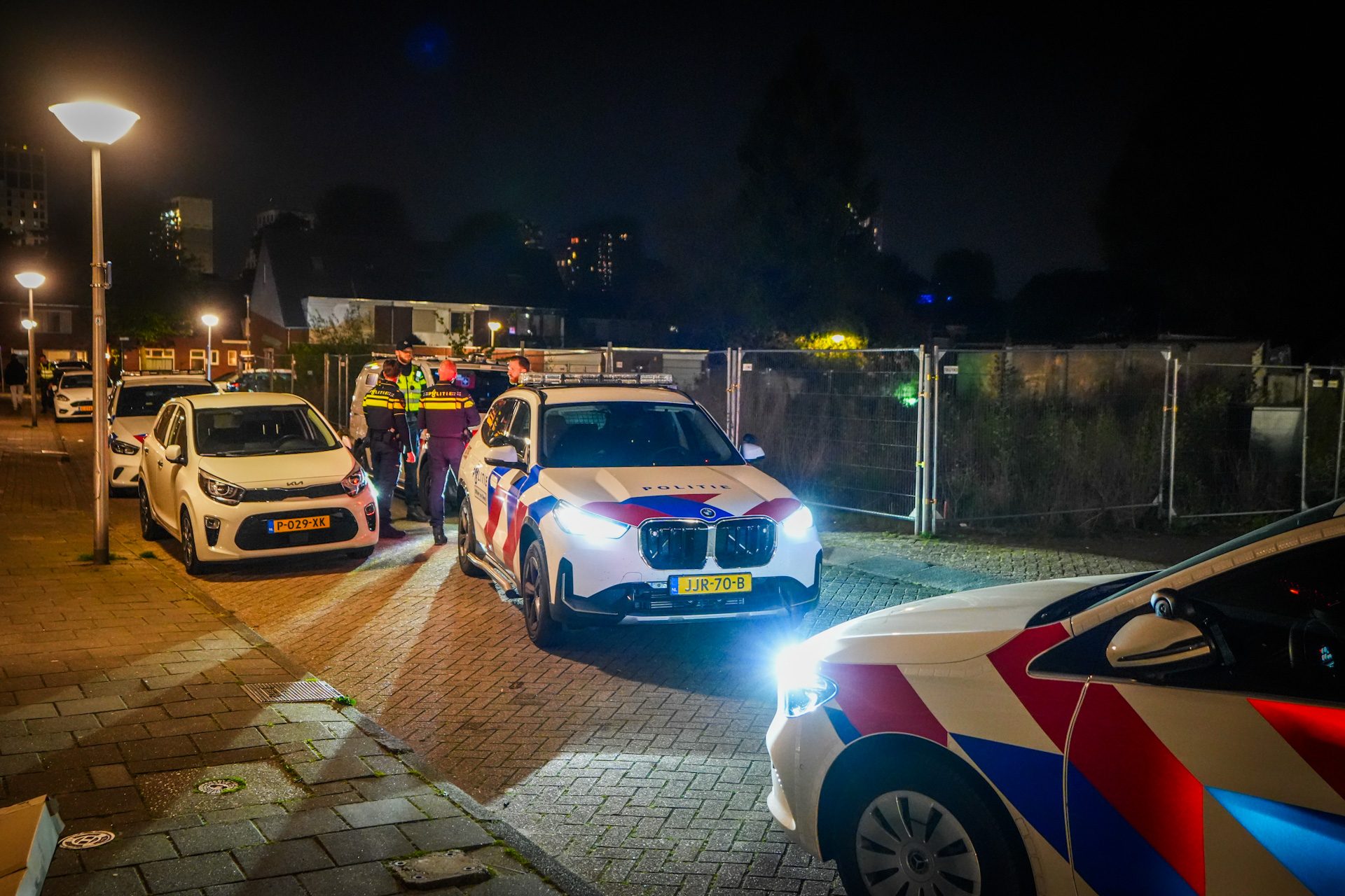 De politie doorzoekt een braakliggend terrein met zaklampen, omdat het steekwapen mogelijk over een hek is gegooid. Mogelijk wordt ook een speurhond ingezet. De politie onderzoekt de zaak en wil het slachtoffer spreken zodra dat mogelijk is.