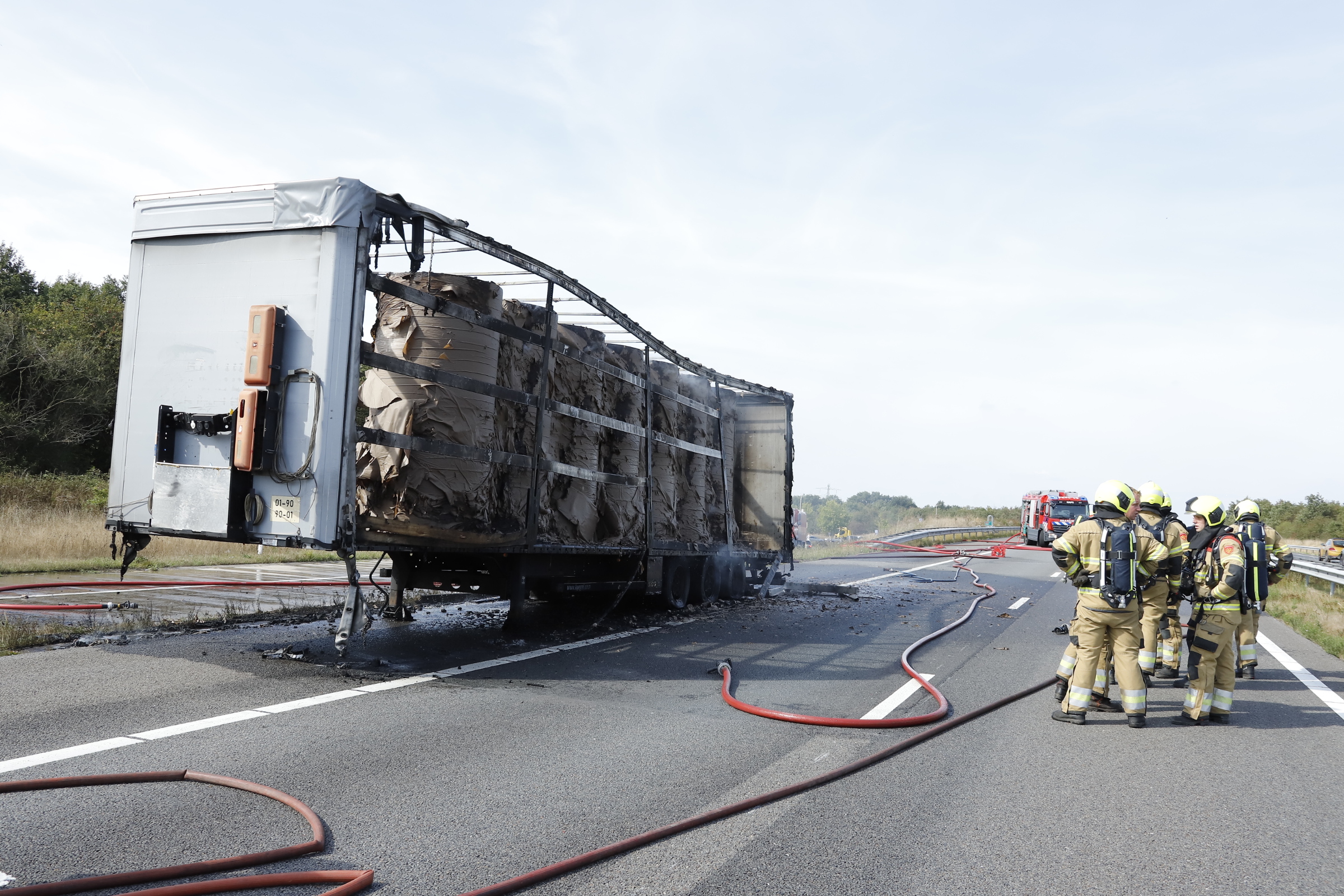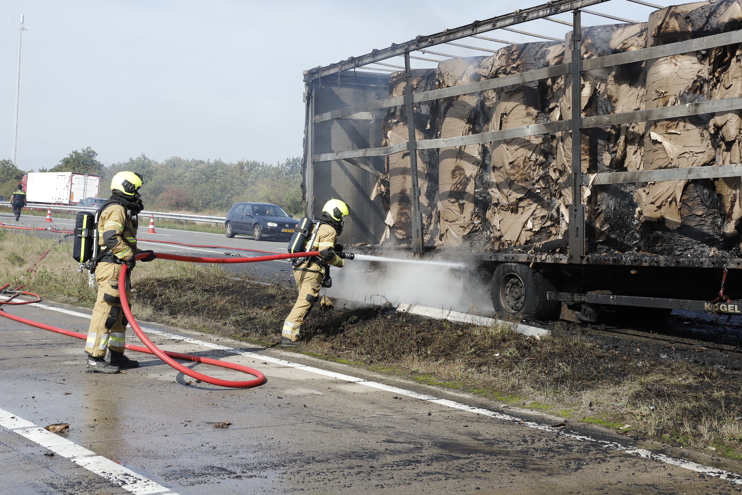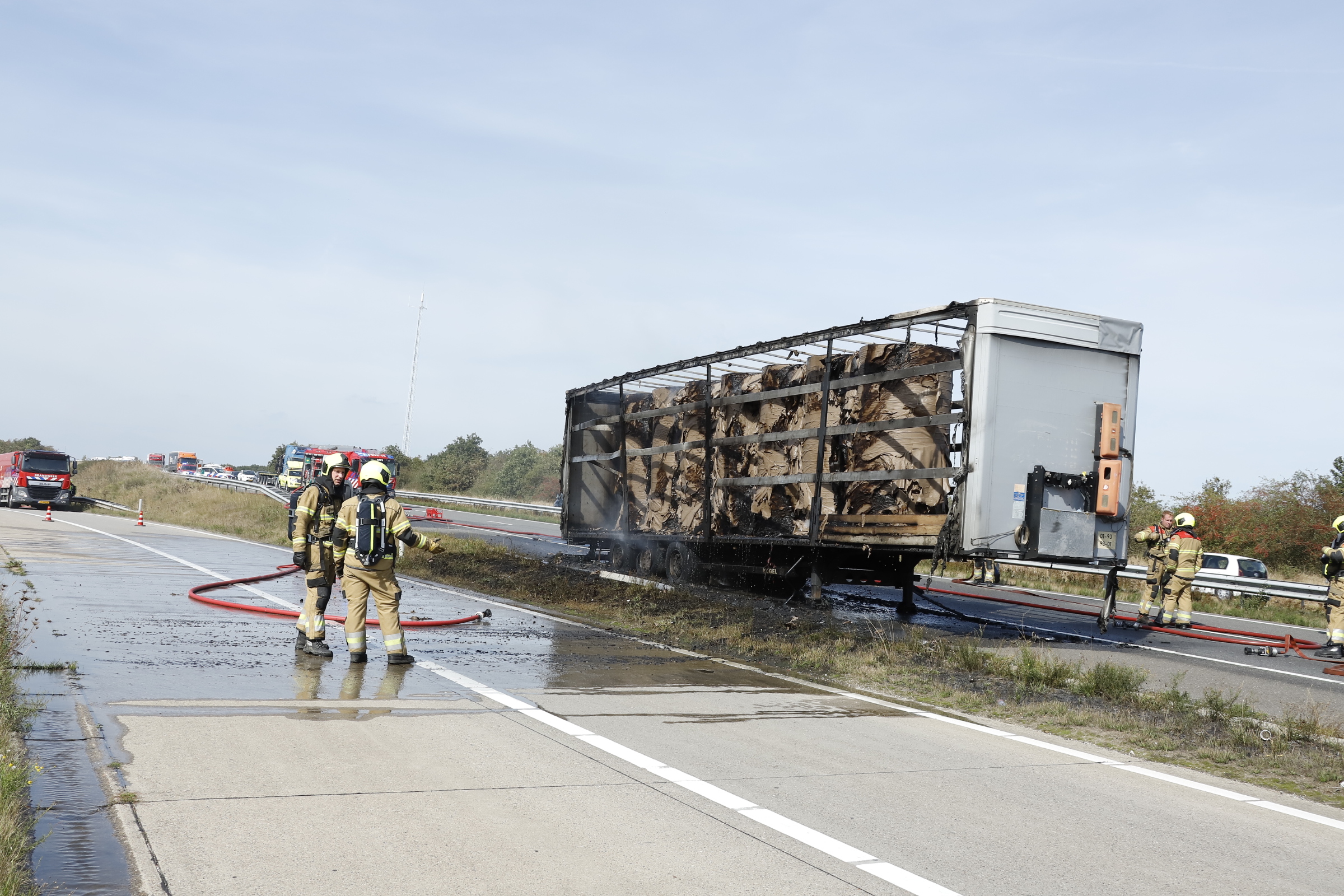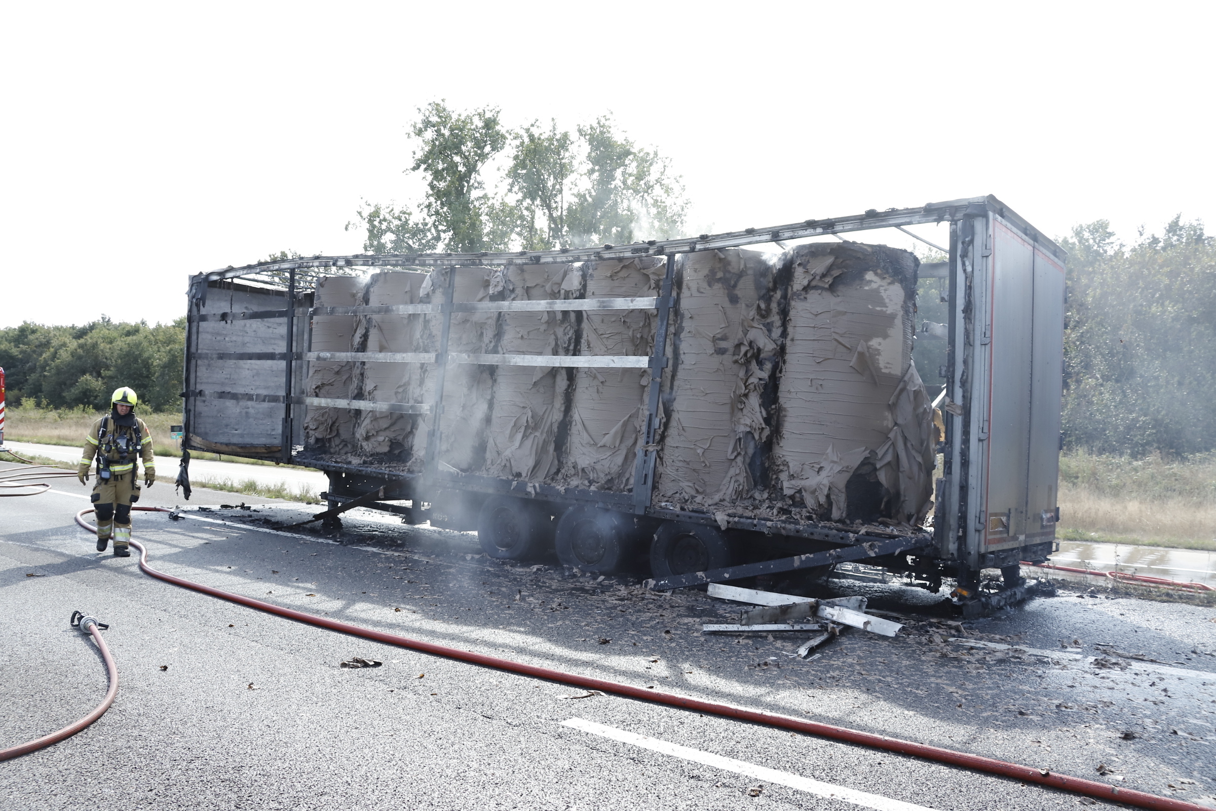 Aanhanger van vrachtwagen met papier brand uit op A73 bij Boxmeer