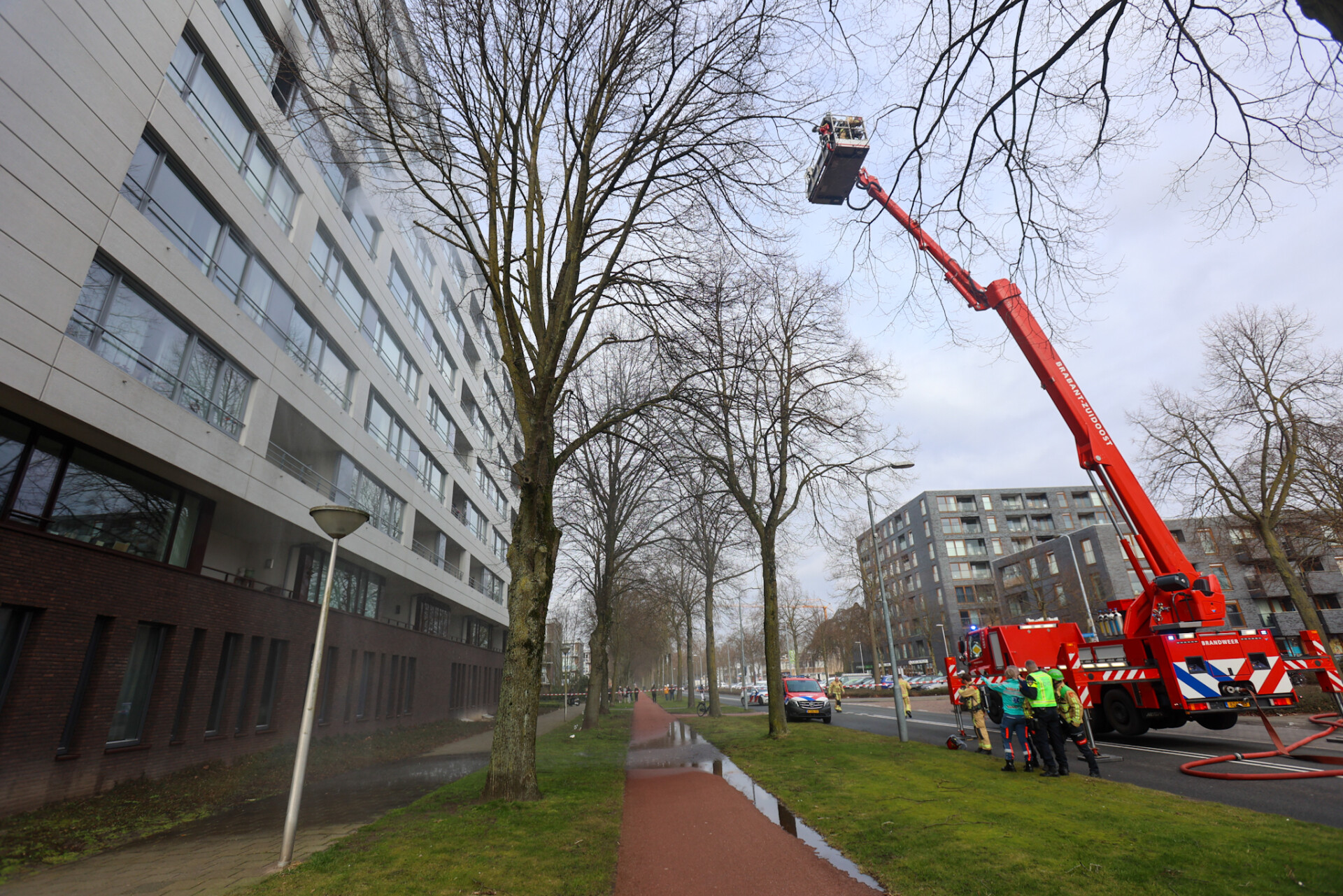 De brand ontstond op de vijfde etage en zorgde voor flinke rookontwikkeling. Drie blusvoertuigen en een hoogwerker werden ingezet om het vuur te bestrijden. De brandweer had de situatie snel onder controle, waarna nabluswerkzaamheden begonnen.