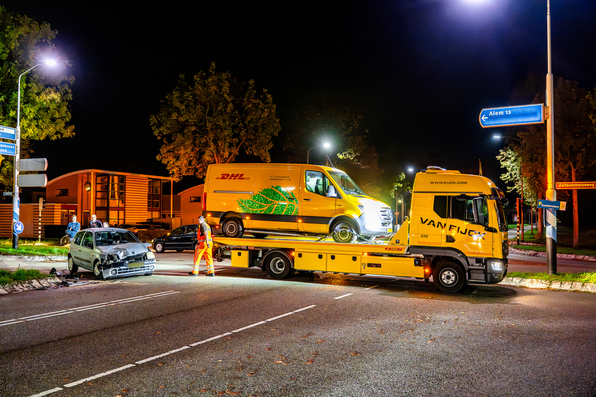 De melding kwam rond 20:08 uur binnen. Een bestelbus en een personenauto kwamen met elkaar in botsing op het kruispunt. Ambulancepersoneel controleerde de inzittenden op verwondingen, maar het is niet bekend of iemand gewond is geraakt.